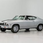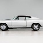 The silver exterior highlights the sleek body lines introduced with the redesigned 1968 Chevelle generation.