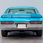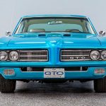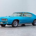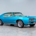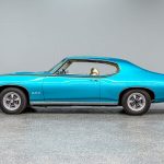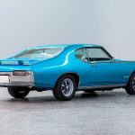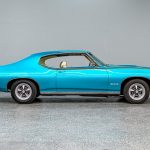 The Crystal Turquoise exterior highlights the aggressive body styling that made the 1969 GTO a standout on American roads.