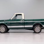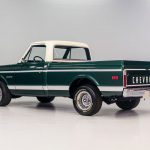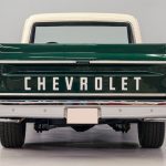 The truck features a striking Rally Green Metallic exterior that highlights its classic square-body styling and vintage Chevrolet heritage.